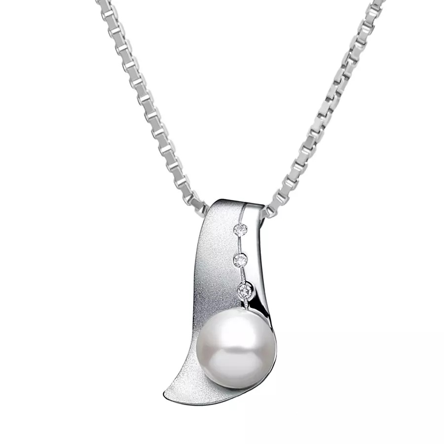 Pandantiv din argint 925, perlă de cultură albă 9-10 mm. Lungime lanțișor 43 cm.