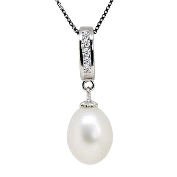 Pandantiv din argint 925, perlă de cultură albă 5-10mm și zirconii