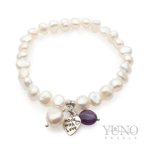 Brățară cu perle albe, 7-8mm, 19cm, Ametist,