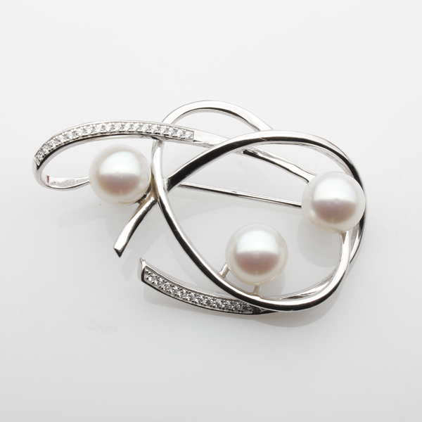 Broşă din argint 925, perle de cultură albe 7.5-8mm, zirconii