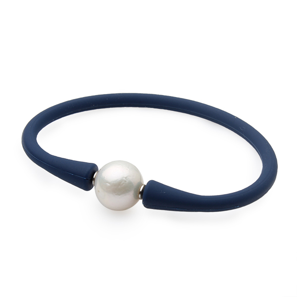 Brățară din silicon bleumarin și perlă albă, 12-13 mm