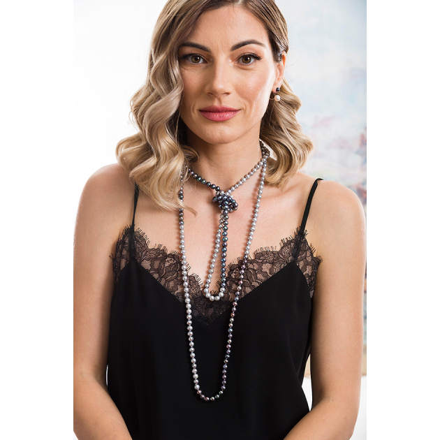 Colier cu perle negre și gri, 7-8mm, lungime 90cm