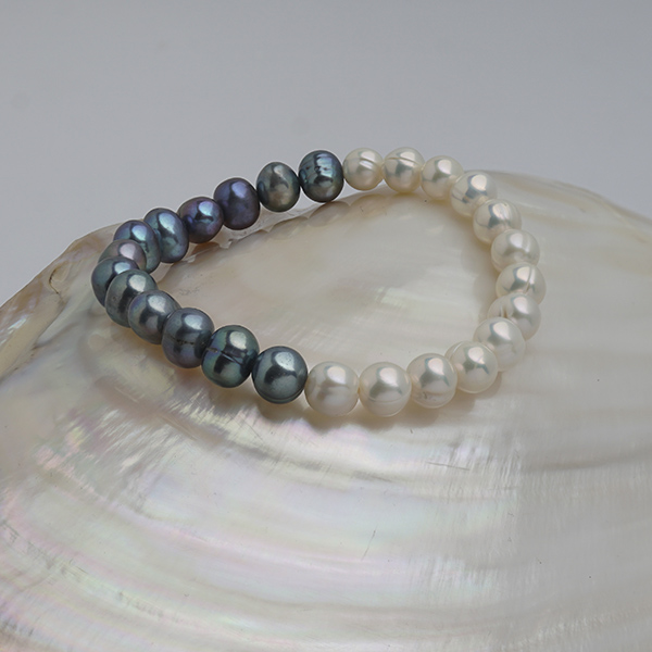 Brațară cu perle negre și albe, 7-8mm