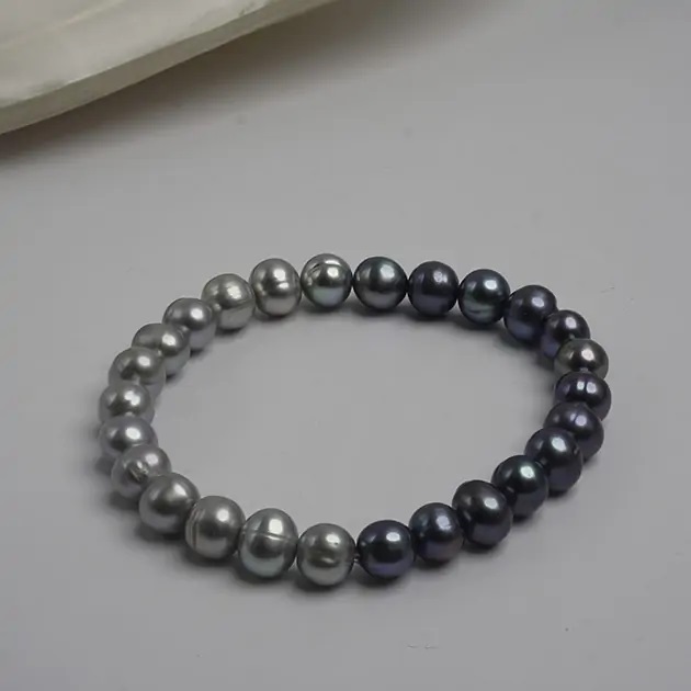 - Brățară cu perle gri și culoare închisă, 7-8mm