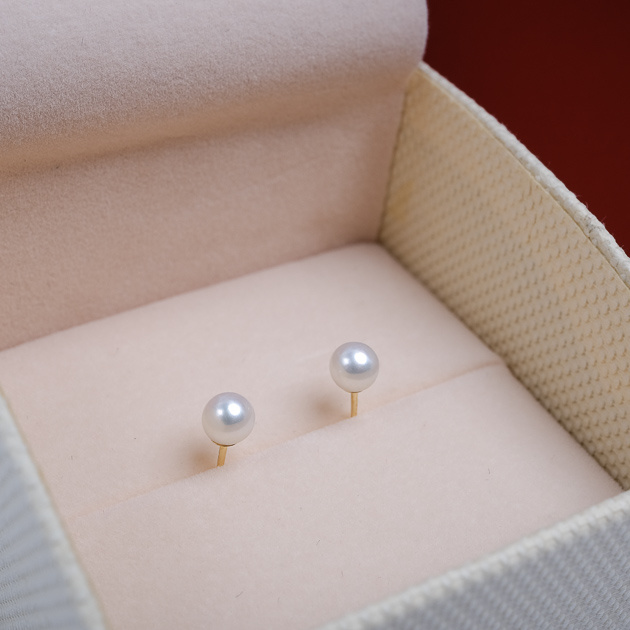 Cercei din aur 18К cu perle albe 4-4.5mm