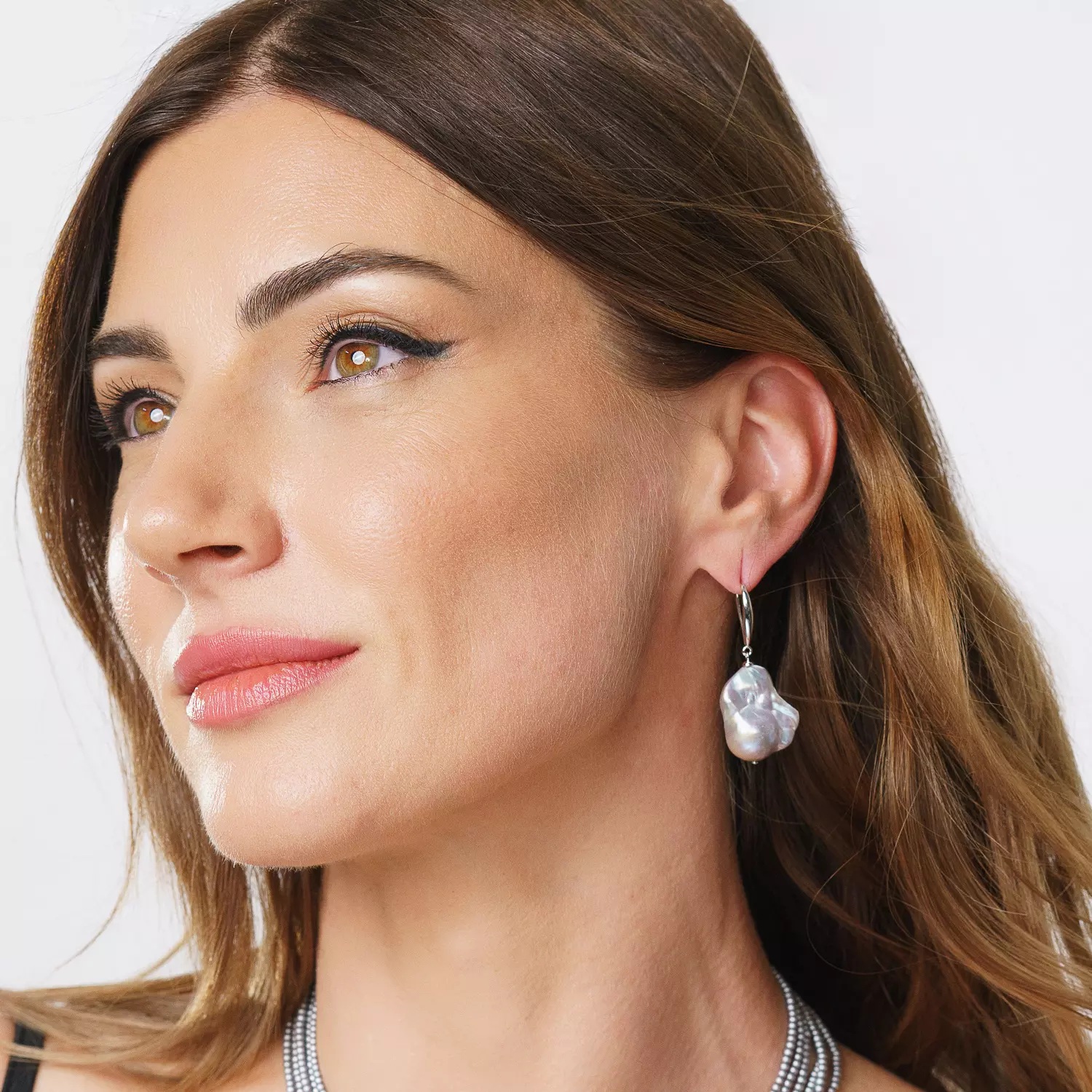 Cercei Statement din Argint cu Perlă Barocă Gri