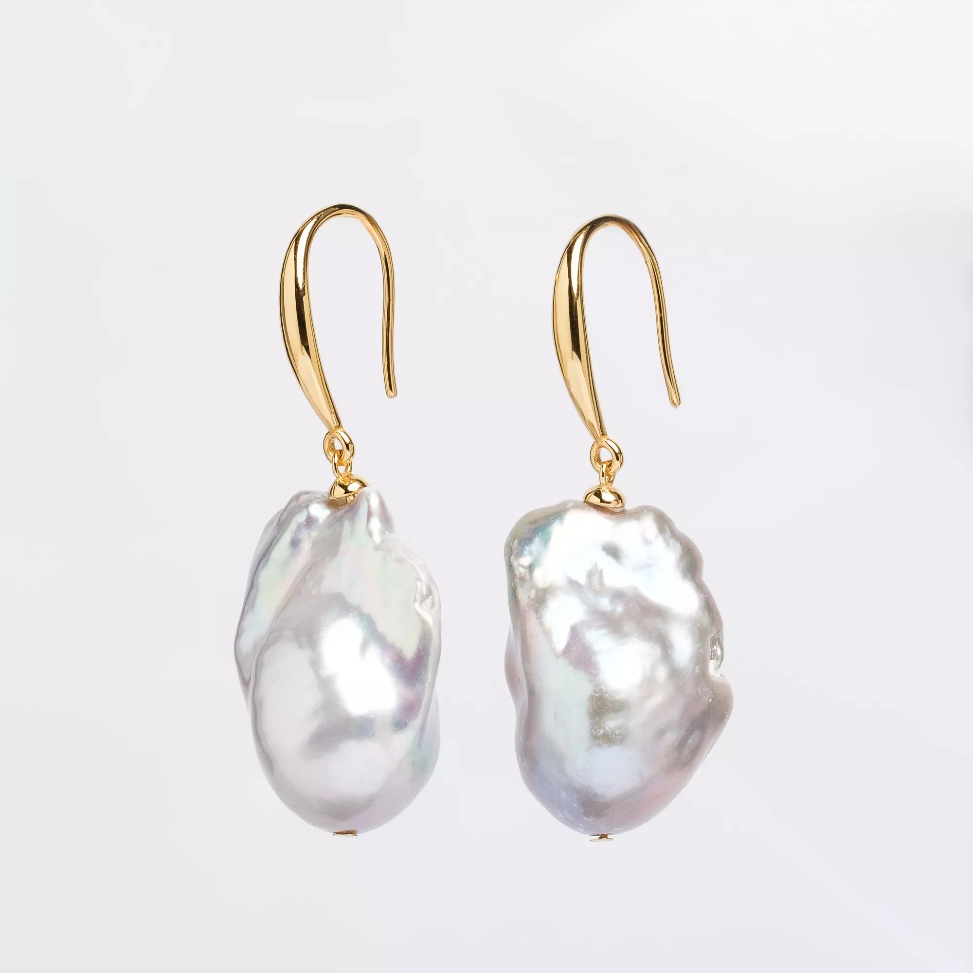 Cercei „Apus Argintiu”: Perle baroc gri și argint aurit