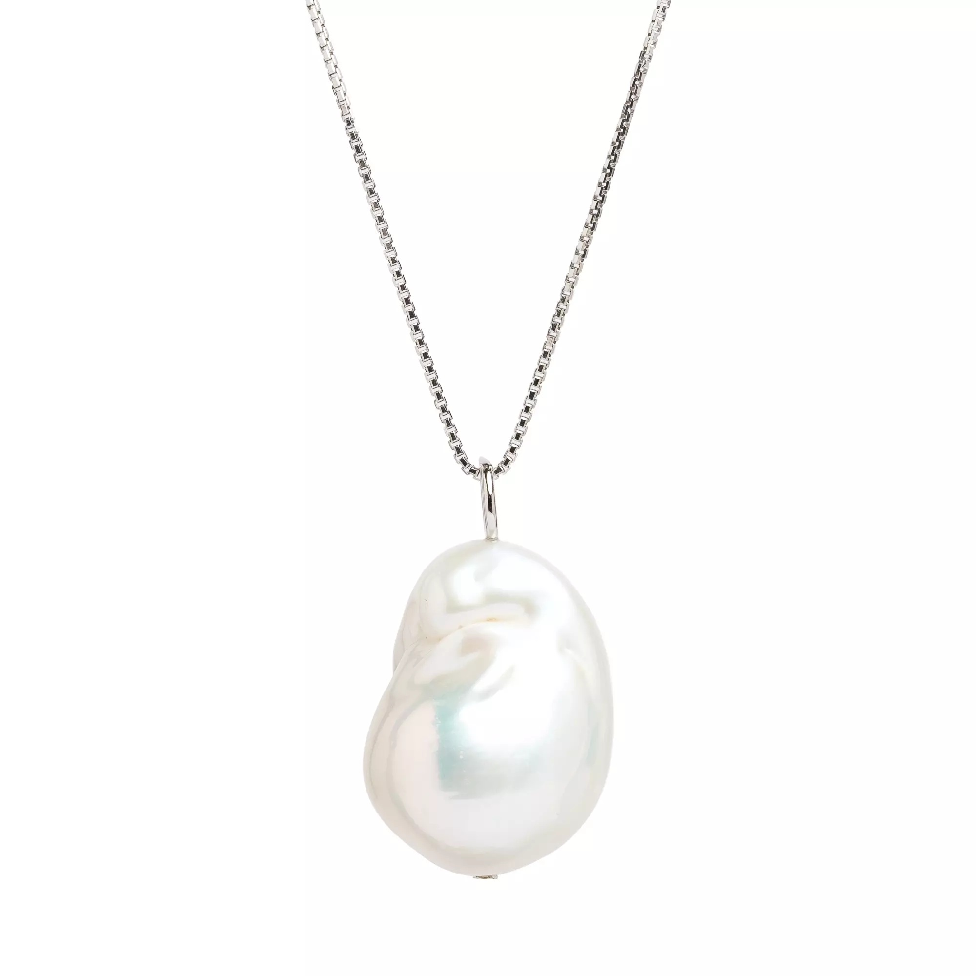 Pandantiv perlă de cultură albă 13-16 mm. Lungime lanțișor 43 cm