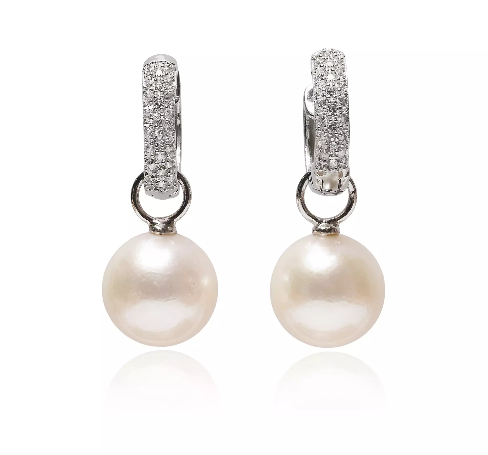 Cercei din Argint cu Perle Albe Edison (12-12.5 mm) și Zirconii