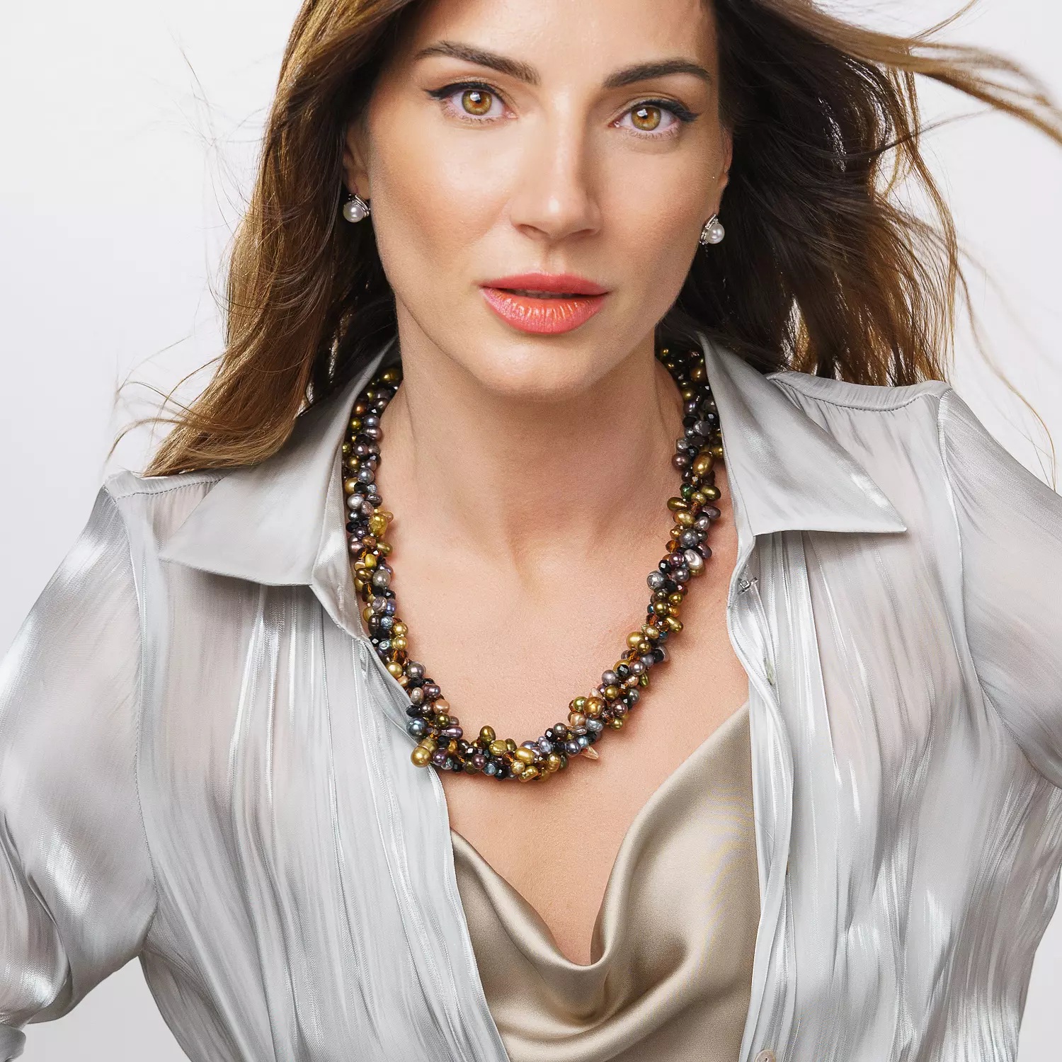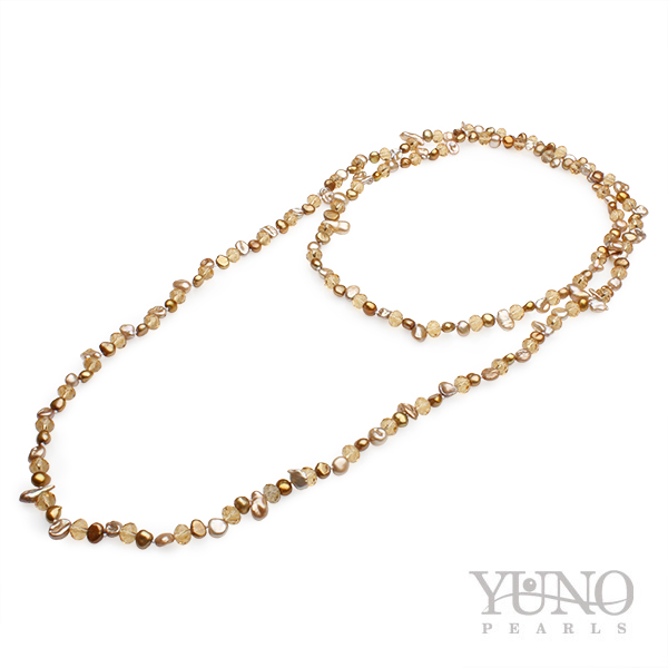 O combinație fascinantă de texturi și reflexii, acest set este conceput pentru a adăuga profunzime și strălucire oricărei garderobe. Mixul de perle naturale în nuanțe pământii și cristale fațetate creează un accesoriu dinamic, perfect pentru un look stratificat (layering) de mare efect.