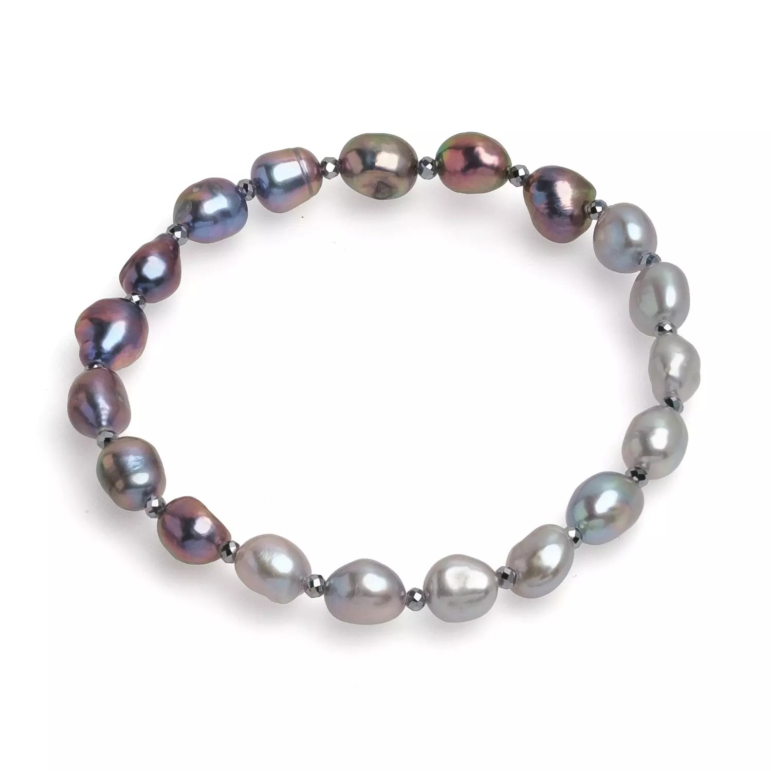 Brățară Elastică cu Mix de Perle Naturale Gri-Antracit și Hematit