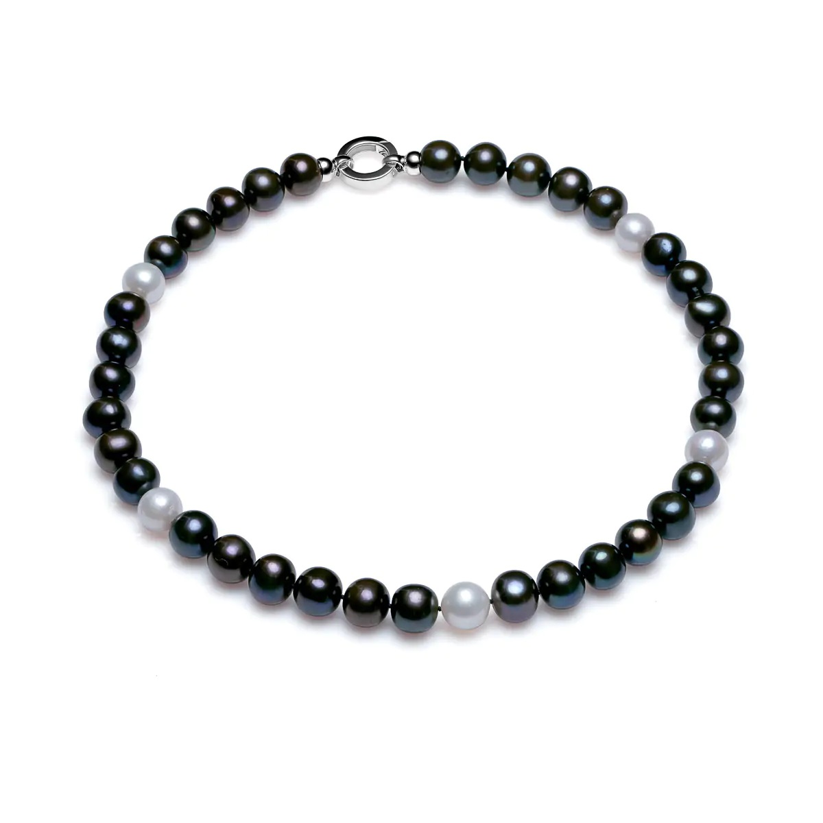 Colier „Contrast Imperial”: Perle de cultură negre și albe (11.5–13 mm)