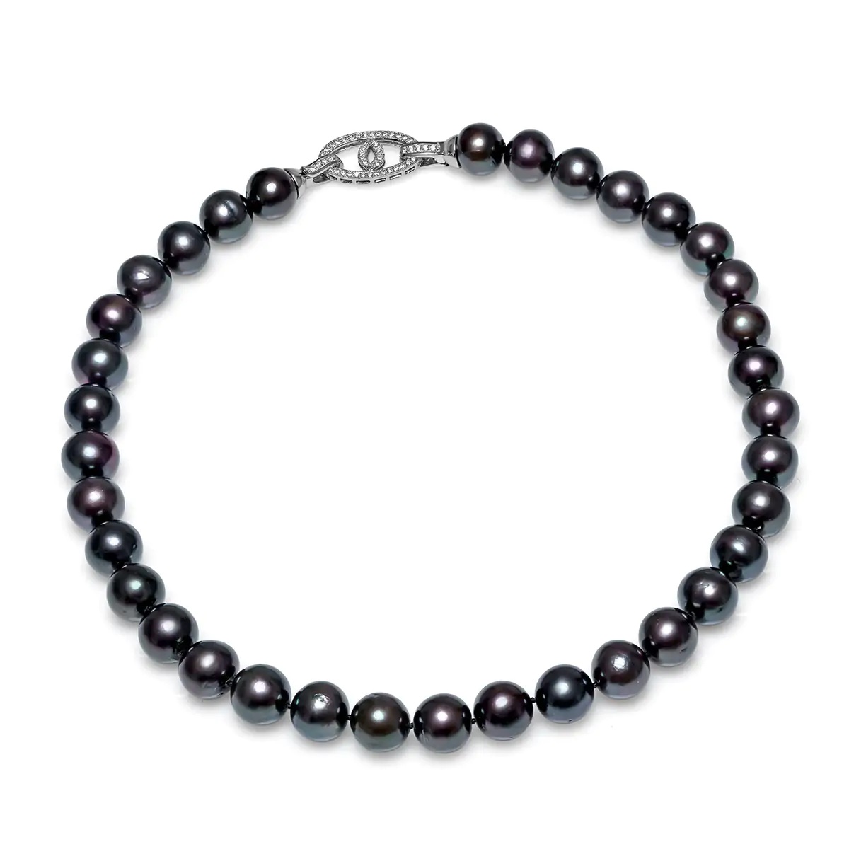 Colier de Lux cu Perle Negre Impozante și Închizătoare Strălucitoare