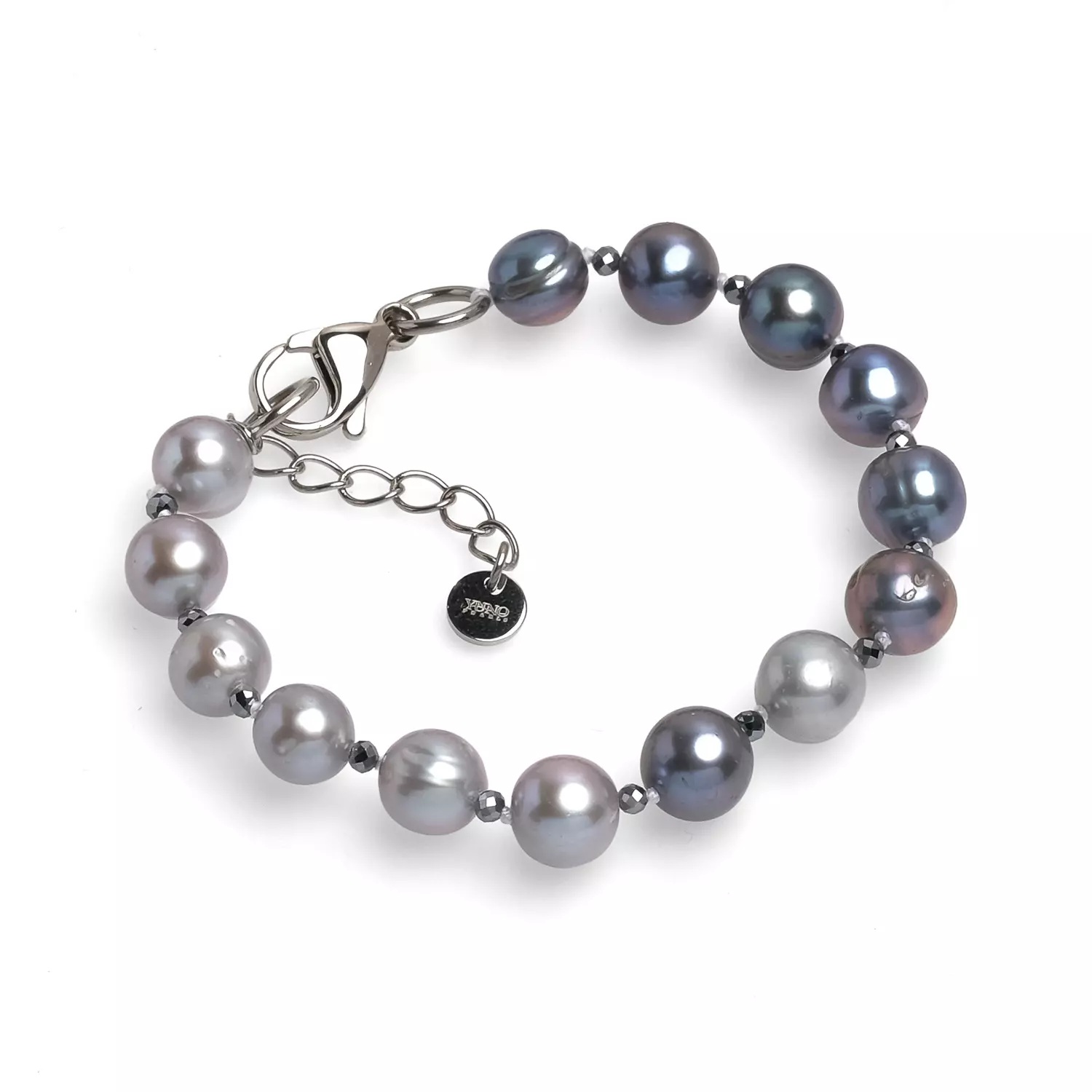 Descoperă eleganța clasică cu această brățară rafinată, împodobită cu perle de cultură gri și mărgele fațetate strălucitoare.