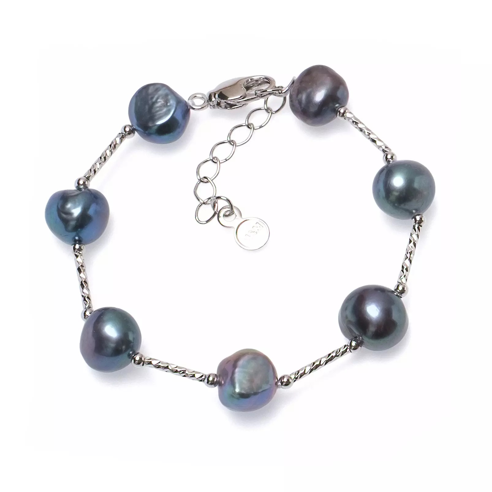 Brățară elegantă din perle de cultură negre, cu detalii metalice