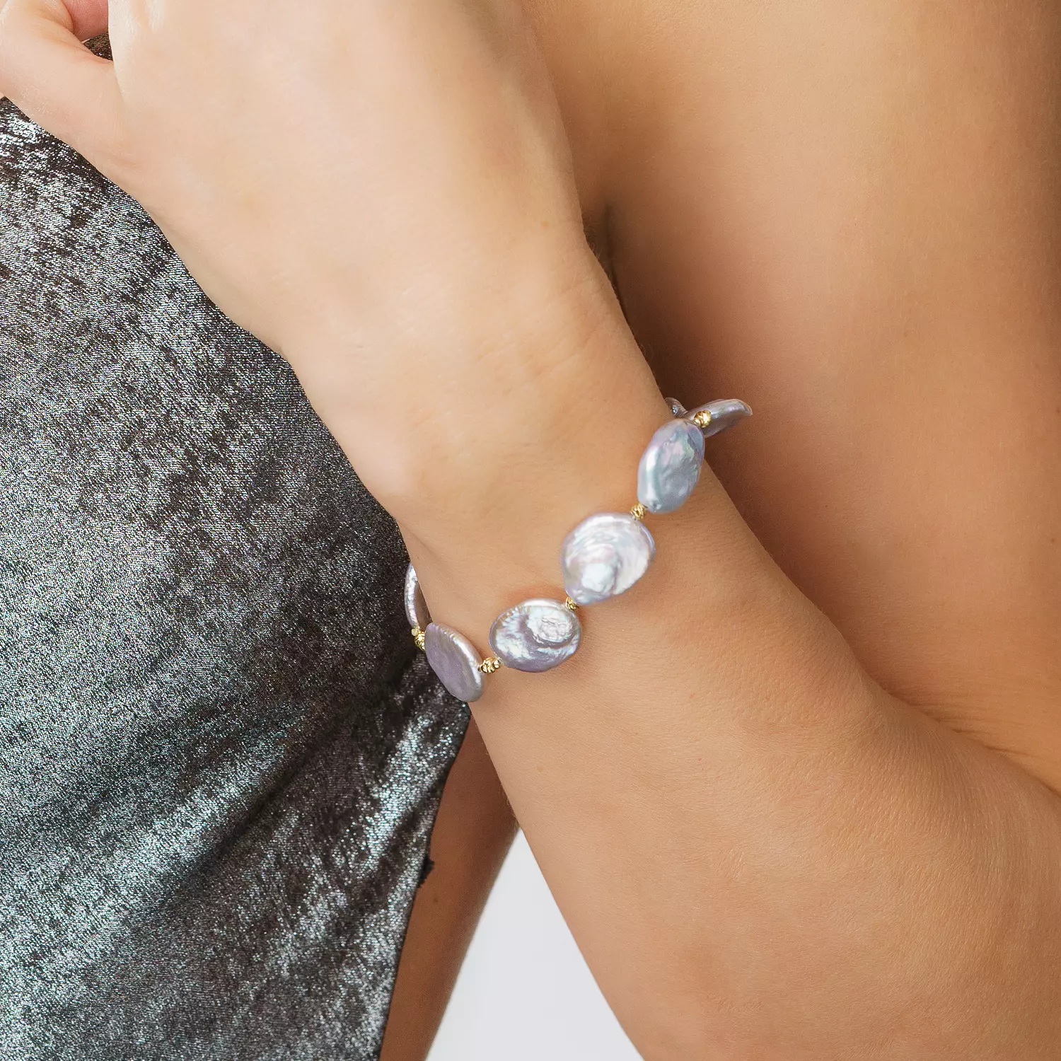Brățară Elegantă cu Perle de Cultură Tip Coin, Culoare Gri Mistic