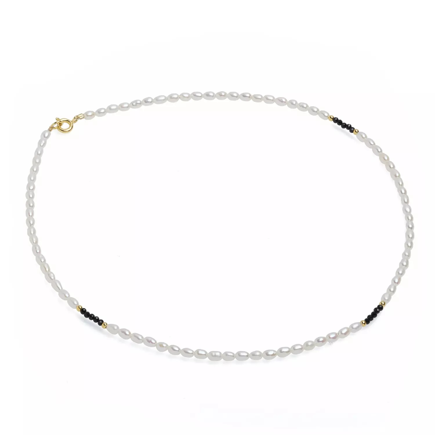 Colier Choker Delicat cu Perle și Spinel Negru – Eleganță Minimalistă