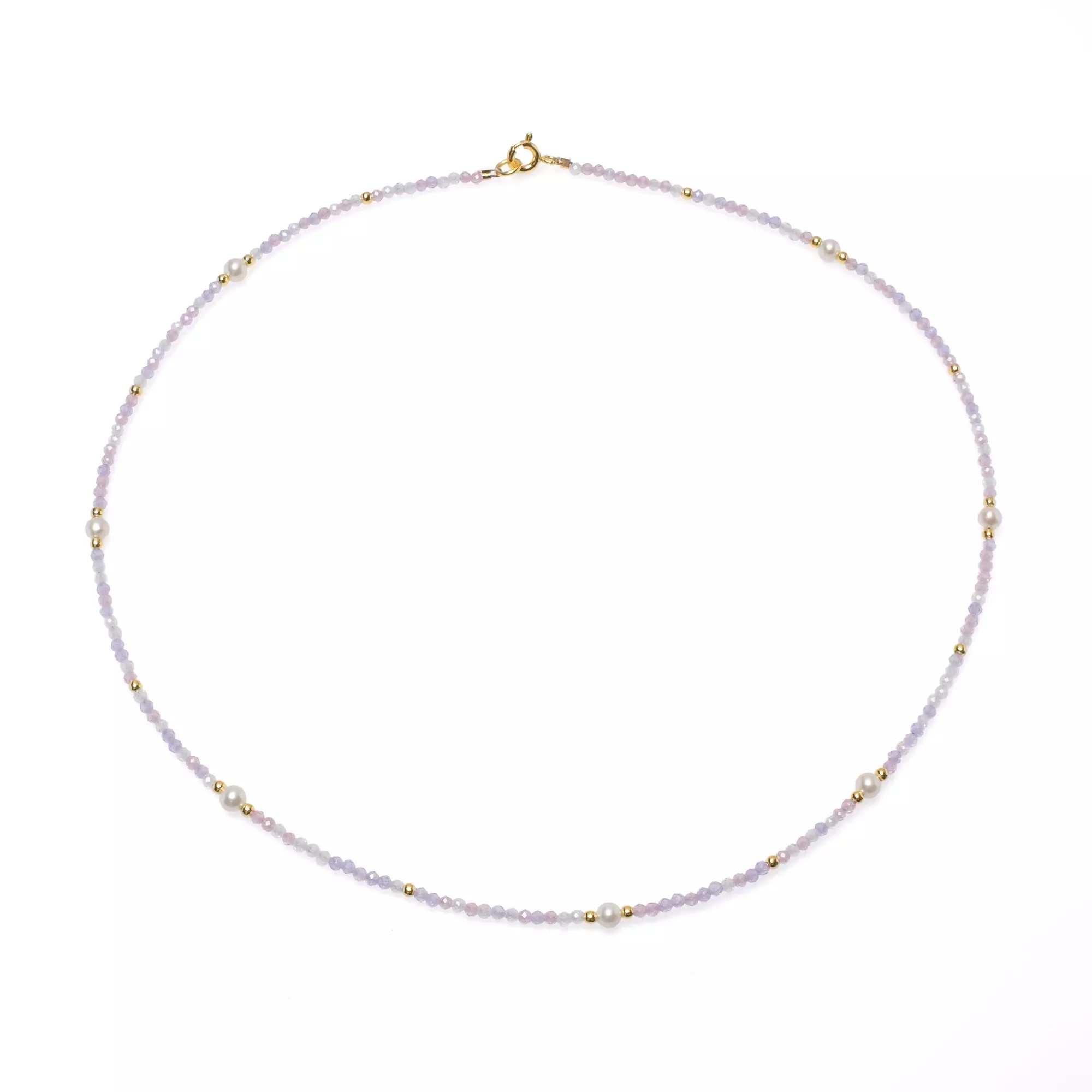 Colier din Argint Aurit cu Perle Albe și Spinel Violet