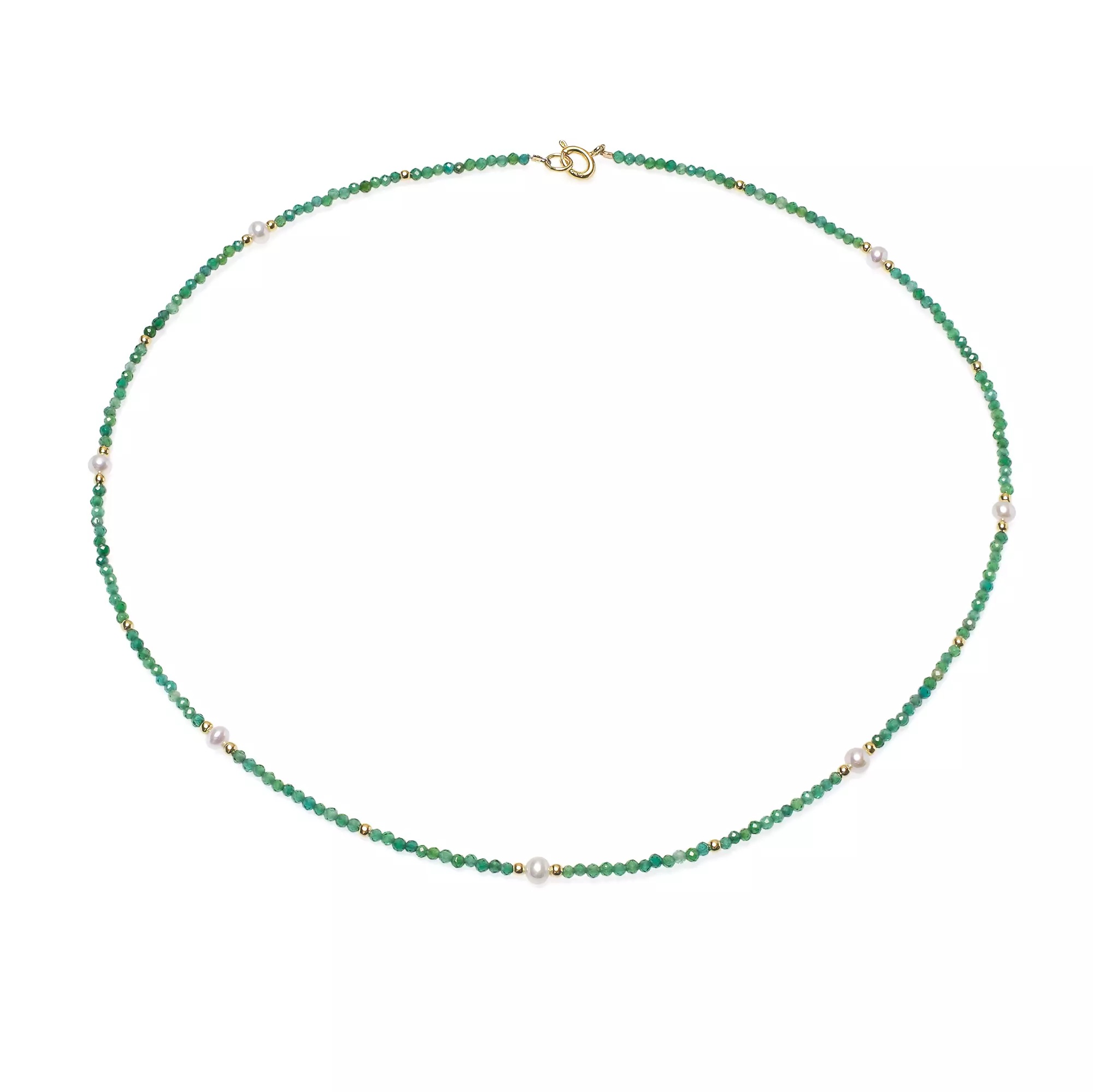 Colier din Argint Aurit cu Perle Albe și Spinel Verde