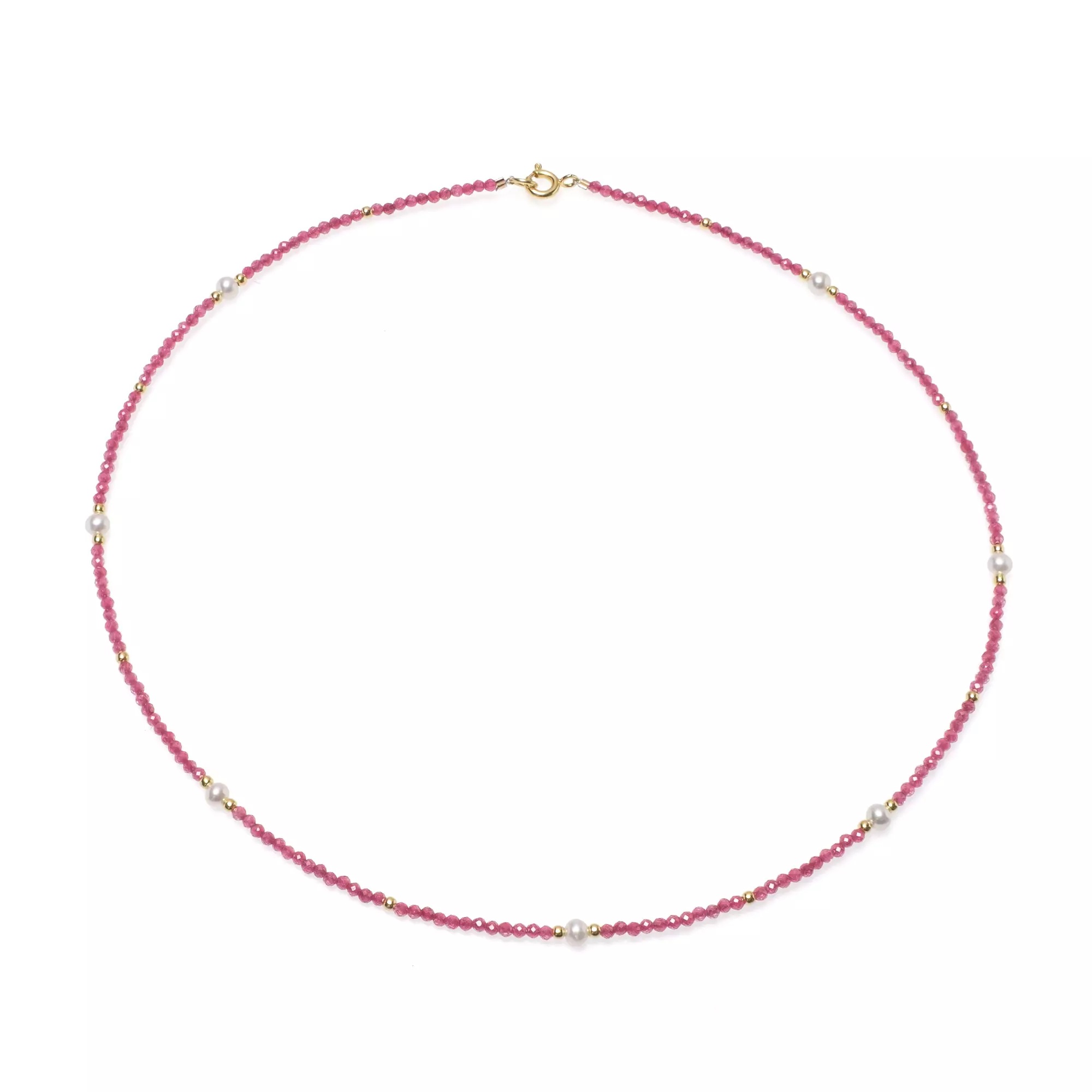 Colier, perle de cultură albe 3,5-4 mm și spinel roz, lungime 42 cm
