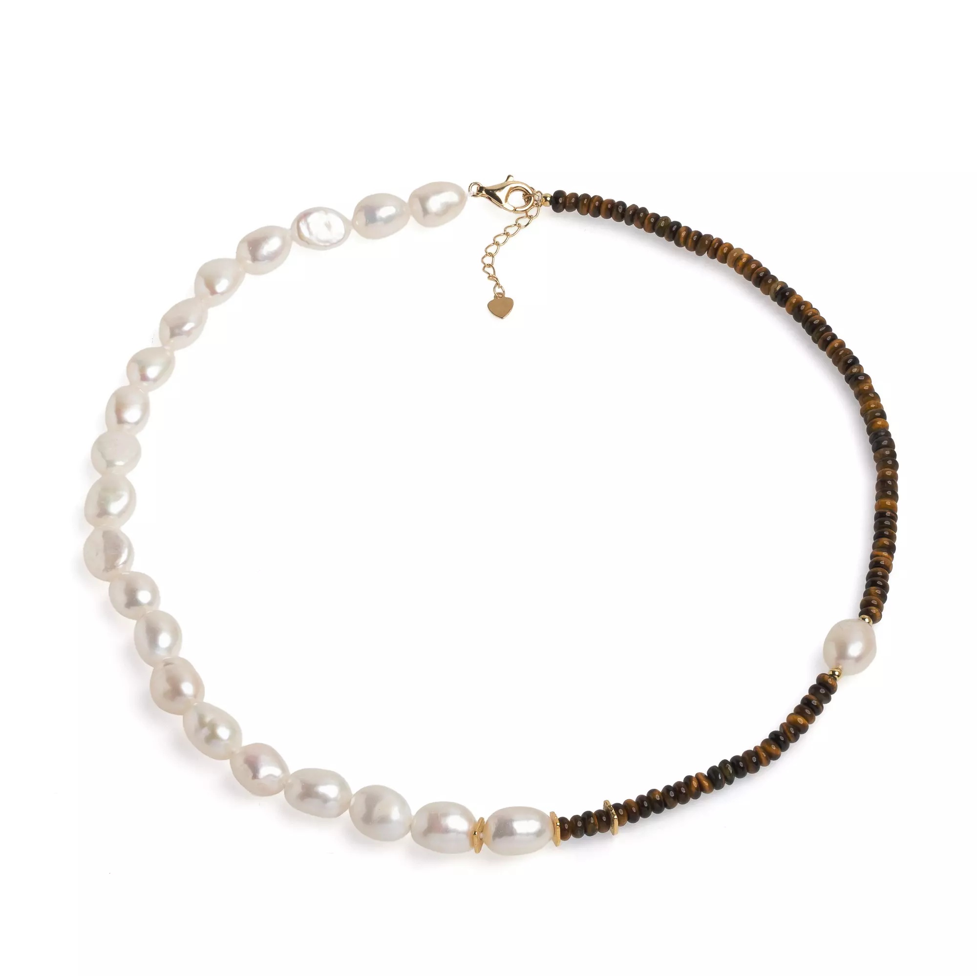 Colier Statement din Perle Naturale și Ochi de Tigru cu Accente Aurii