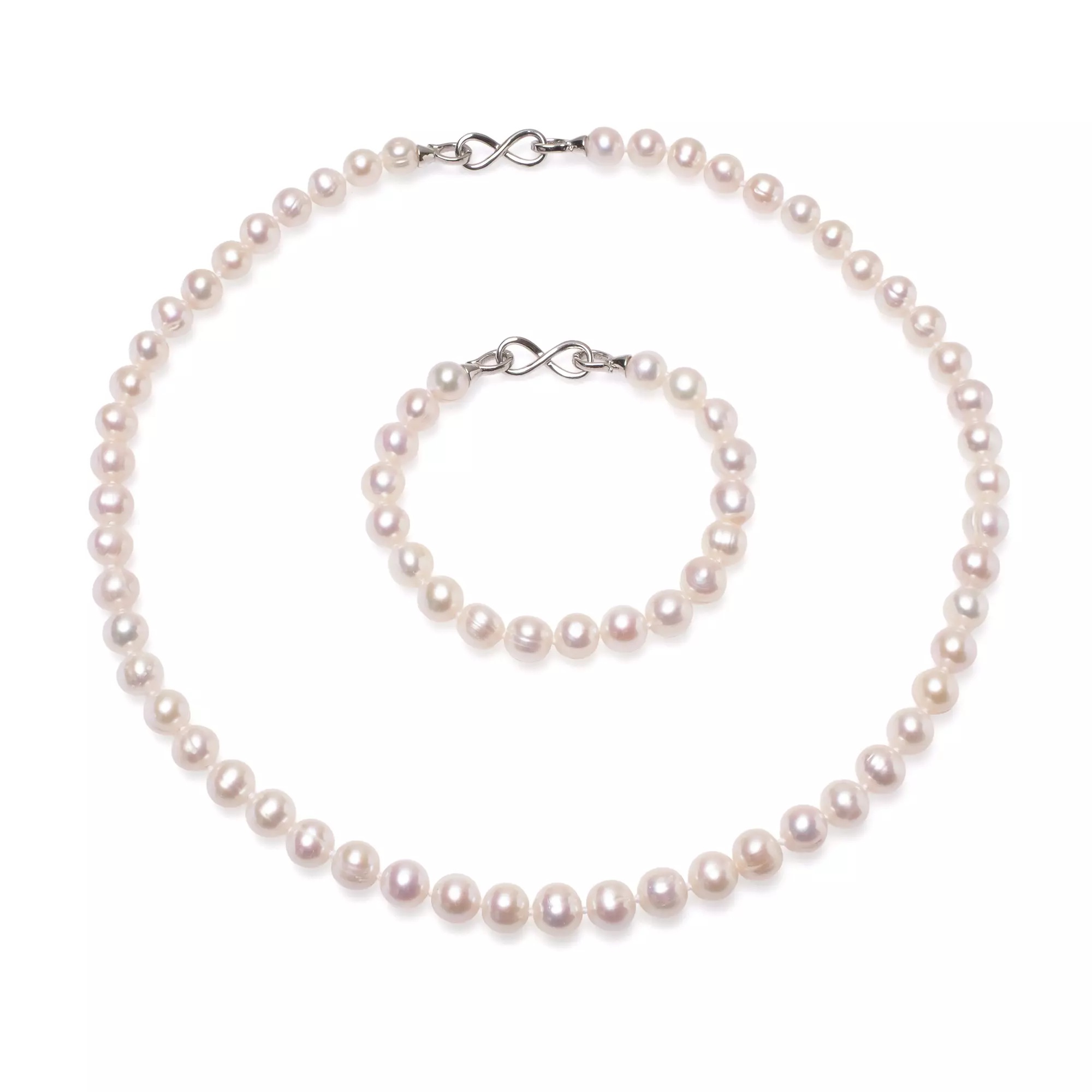 Colier Elegant din Perle Albe cu Închizătoare din Argint „Infinity”