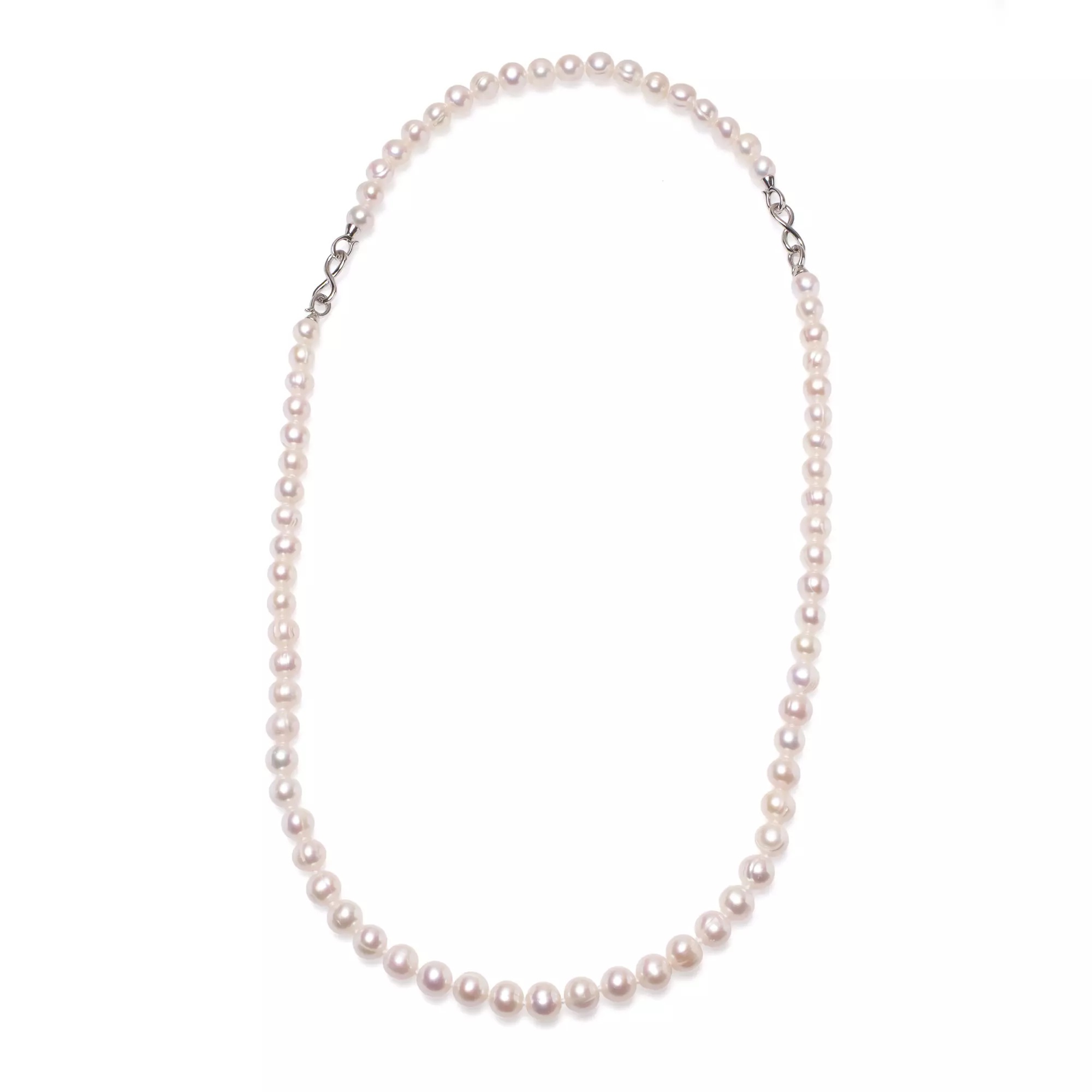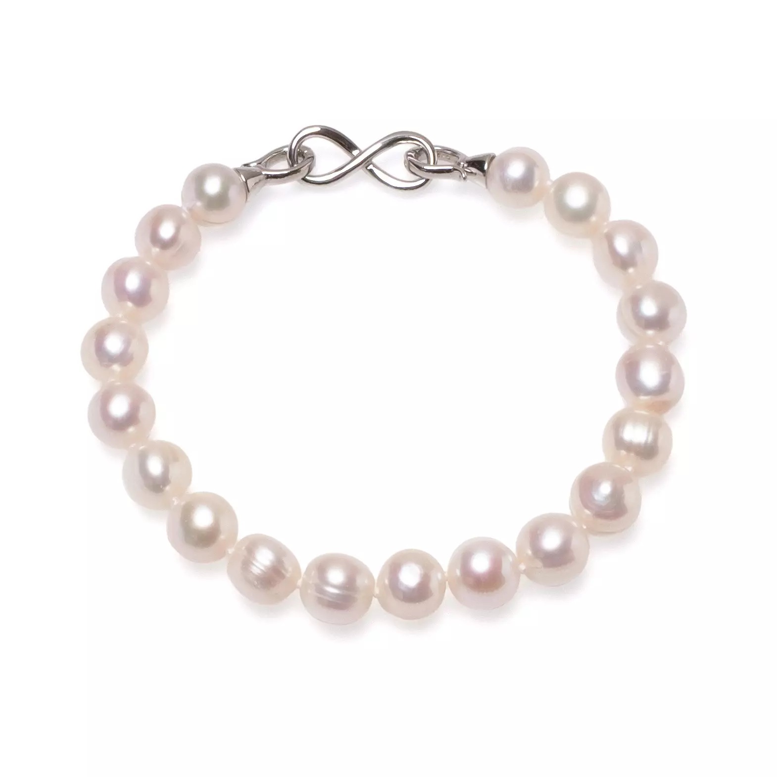 Completează-ți setul de bijuterii cu această brățară deosebită, realizată din perle naturale de cultură de o calitate superioară. Designul său clasic este pus în valoare de închizătoarea simbolică în formă de infinit, transformând acest accesoriu într-o piesă plină de însemnătate și stil.