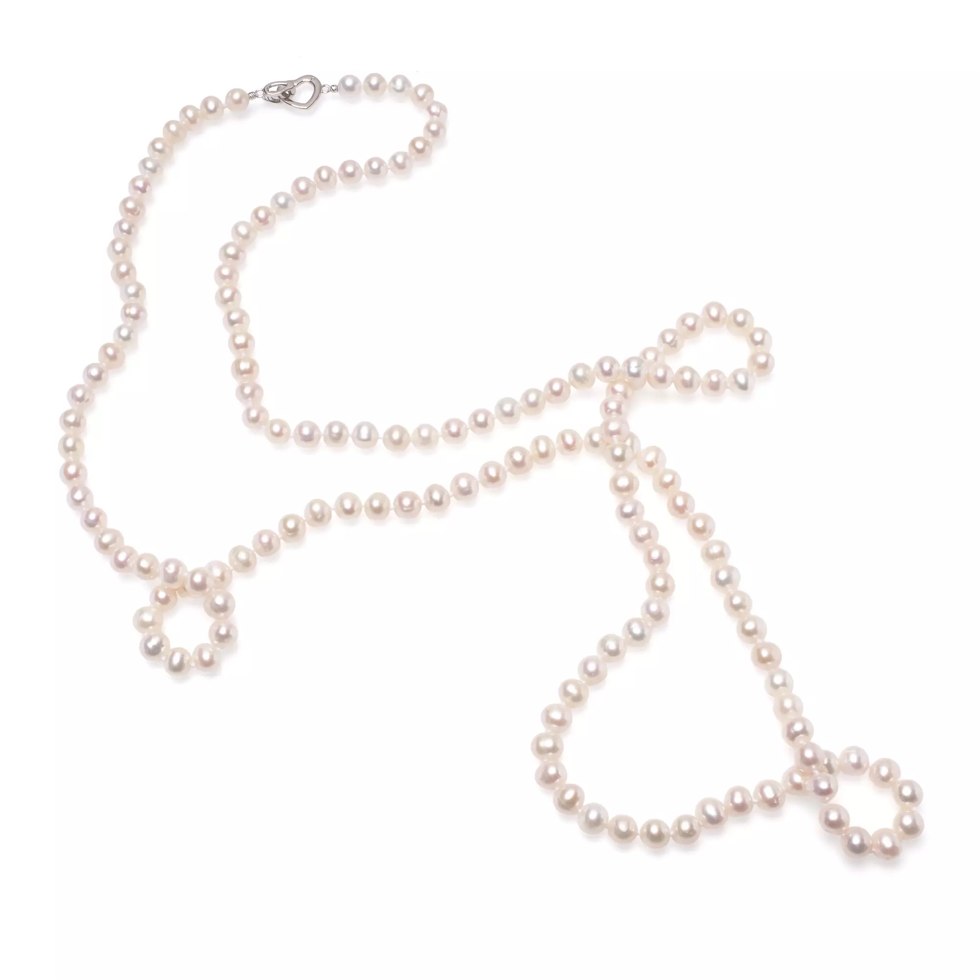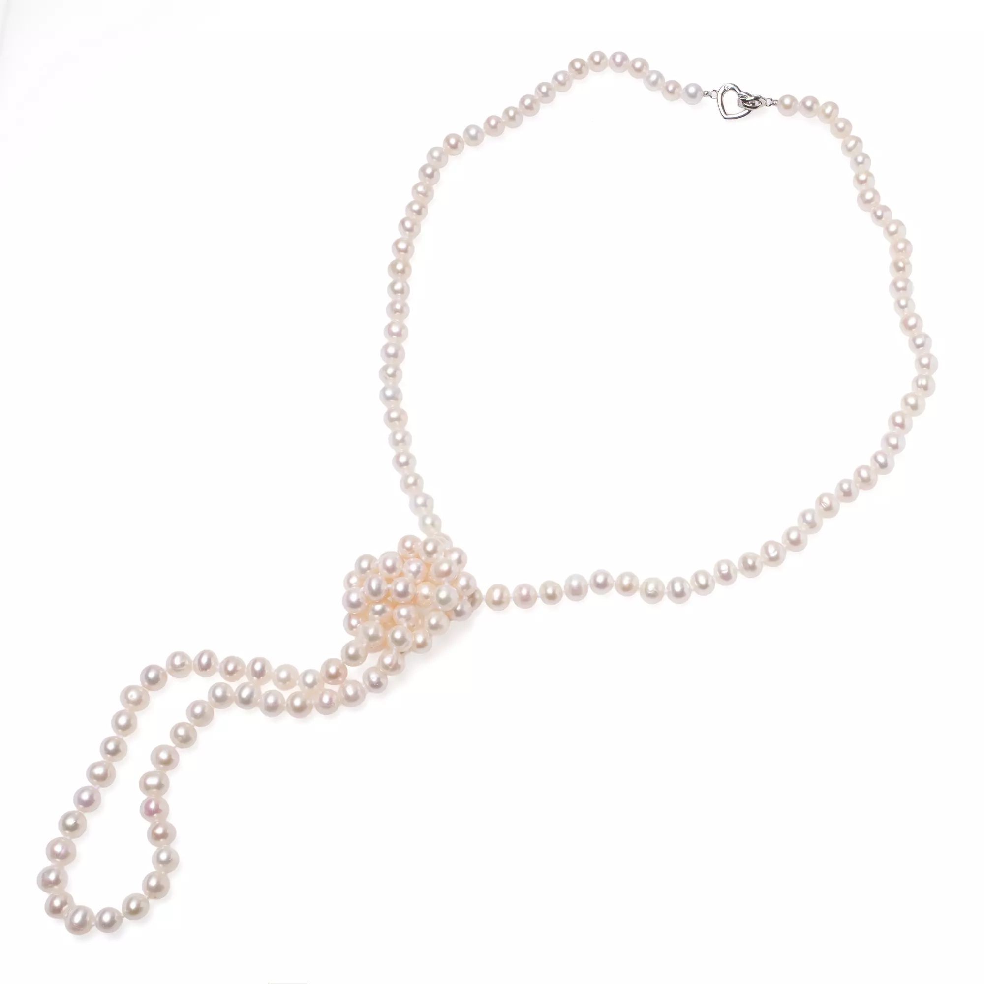 Colier din Perle Naturale Albe cu Închizătoare "Inimă" (100 cm)