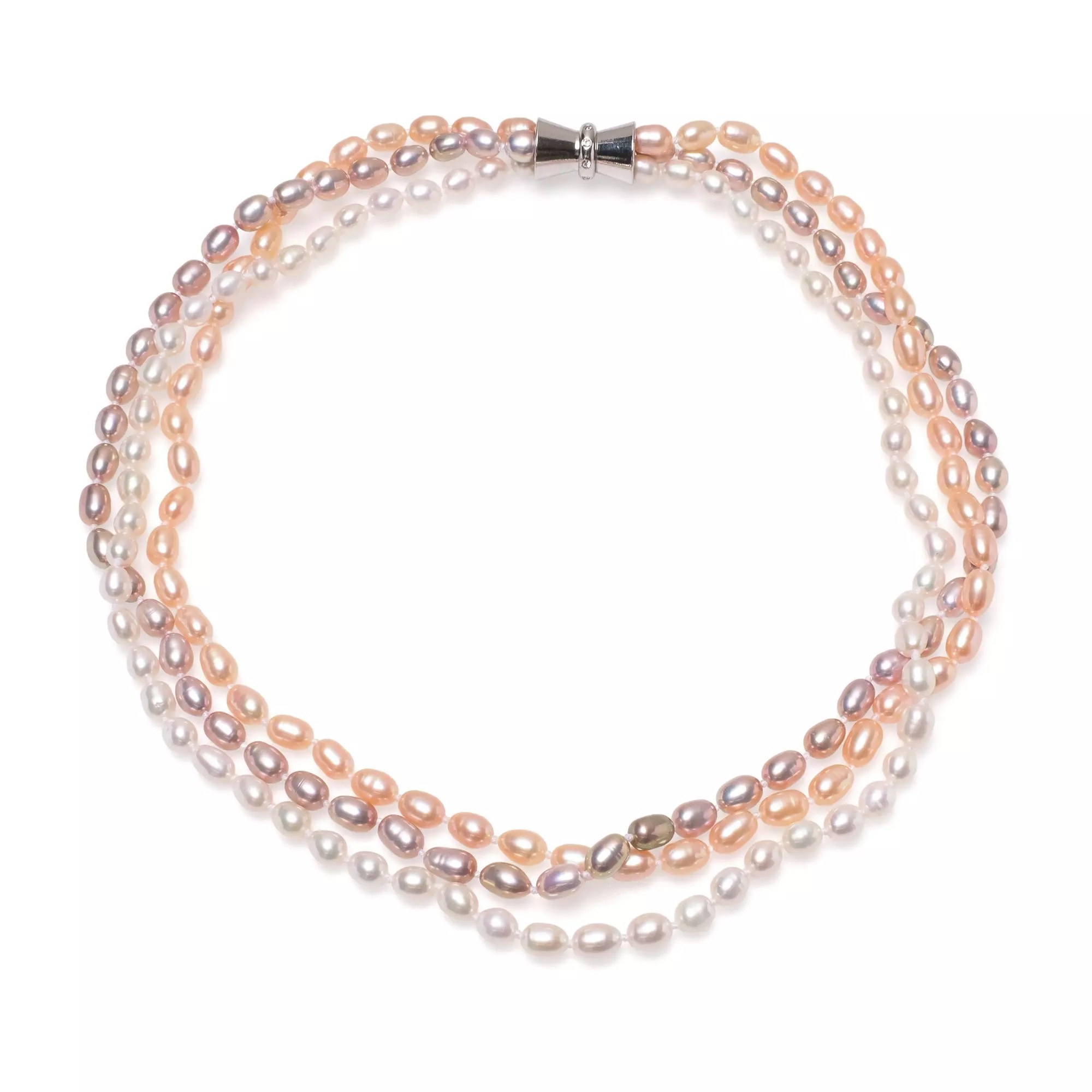 Cele trei rânduri de perle oferă un volum generos și un aspect luxuriant. Designul modern este completat de închizătoarea magnetică cu zirconii, care nu este doar un element de siguranță, ci și un detaliu estetic prețios. Fiind un mix de culori naturale, se asortează ușor cu o gamă largă de vestimentații.