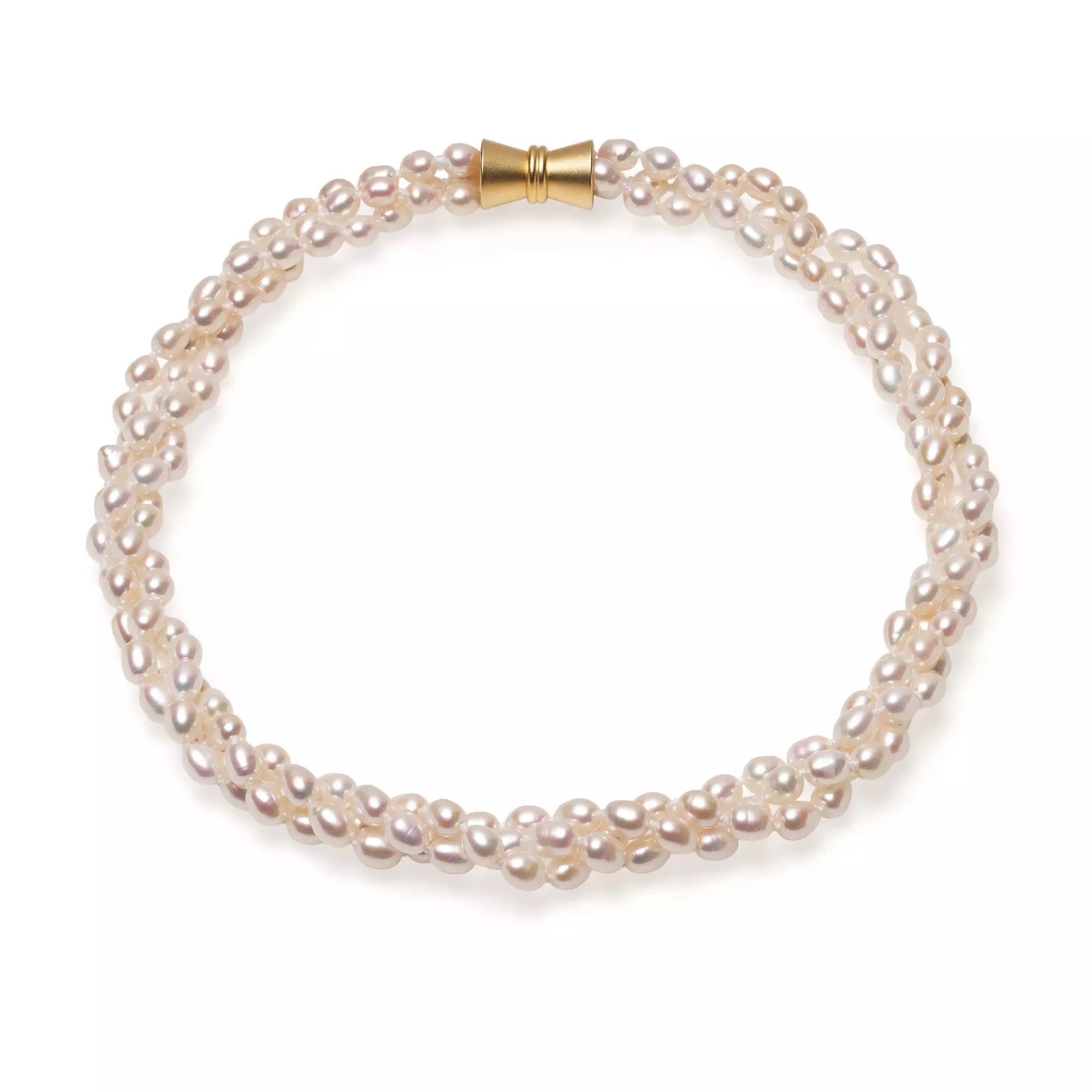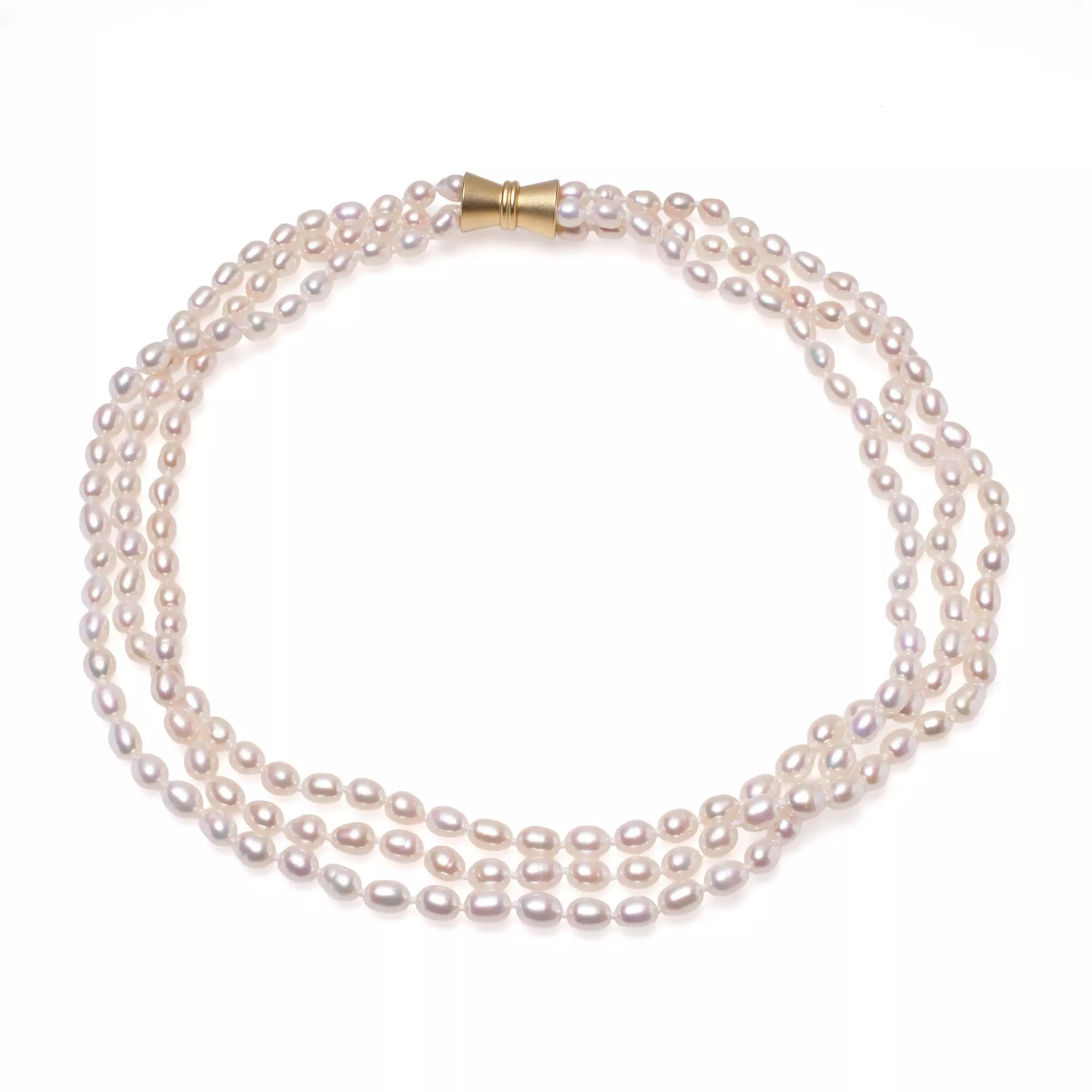 Colier de Lux cu 3 Rânduri de Perle Albe și Închizătoare Placată cu Aur