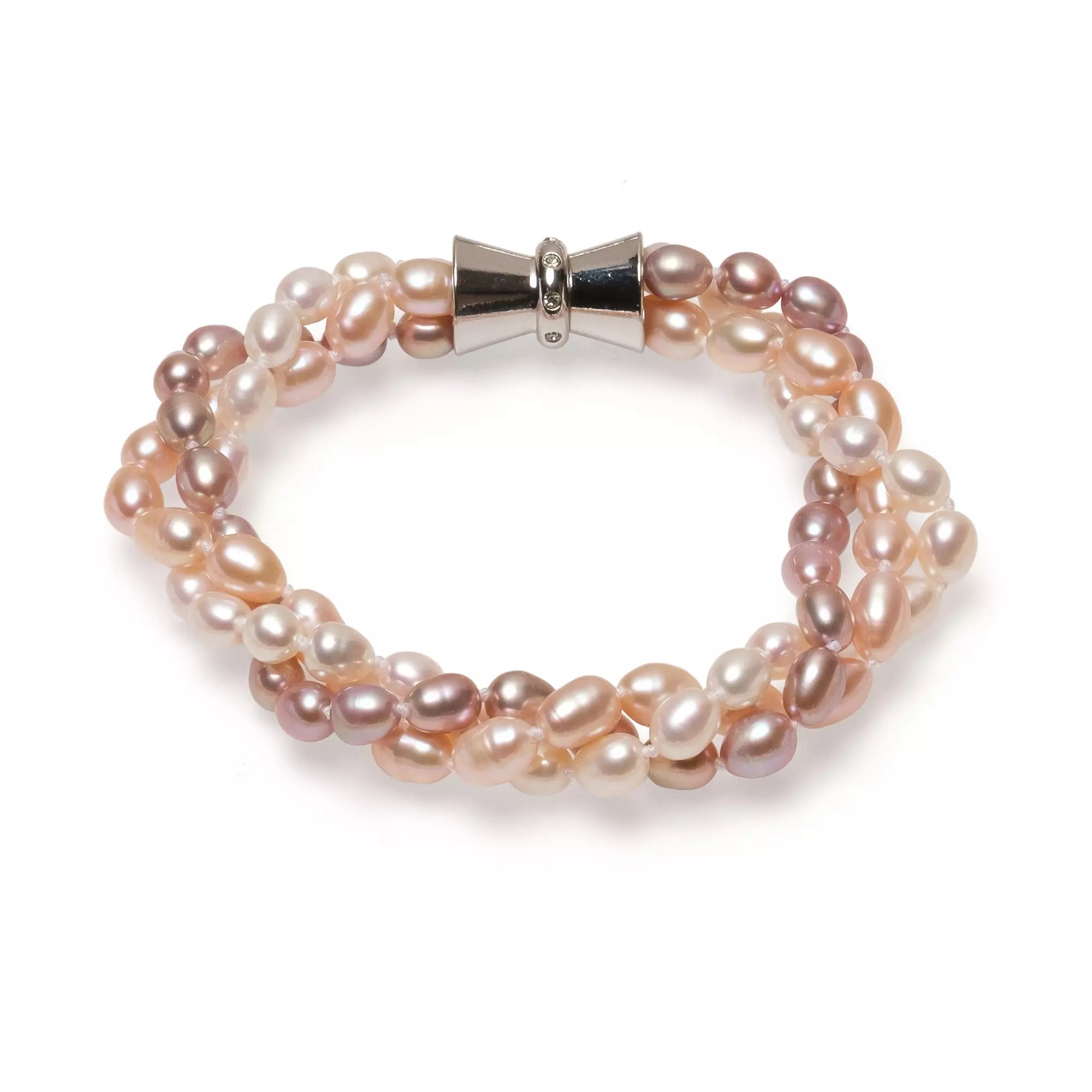 Cele trei rânduri de perle oferă un volum generos și un aspect bogat la încheietura mâinii. Punctul forte al acestei bijuterii este închizătoarea magnetică ornamentată cu zirconii, care transformă un element funcțional într-o adevărată piesă de design. Datorită paletei variate de culori ale perlelor, brățara este extrem de versatilă, asortându-se ușor cu diferite accesorii și stiluri vestimentare.