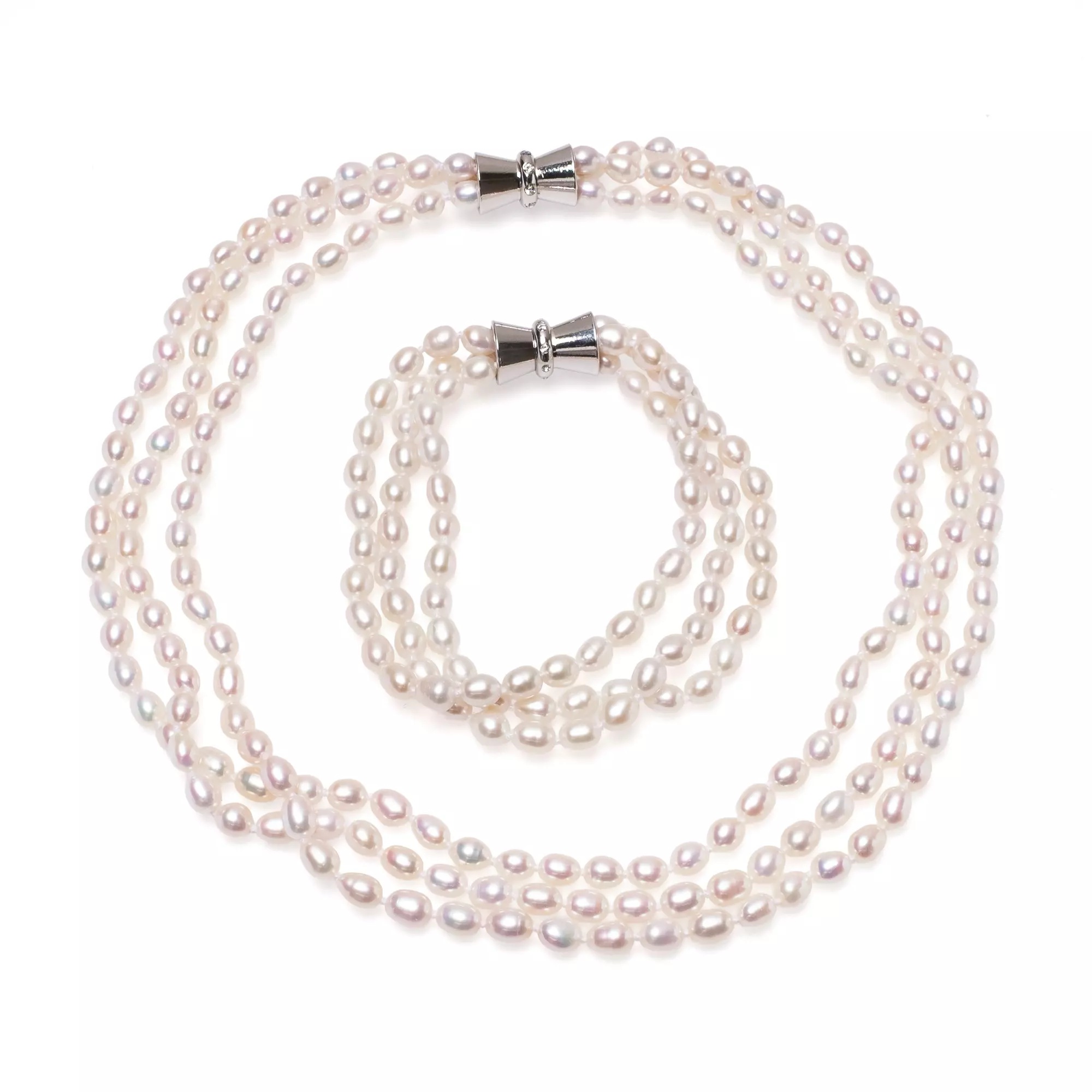 Îmbogățește-ți colecția de accesorii cu această brățară spectaculoasă, o piesă ce emană rafinament și stil clasic. Realizată din trei rânduri suprapuse de perle naturale, această bijuterie este concepută pentru a atrage toate privirile, oferind o strălucire sofisticată la fiecare mișcare a mâinii.