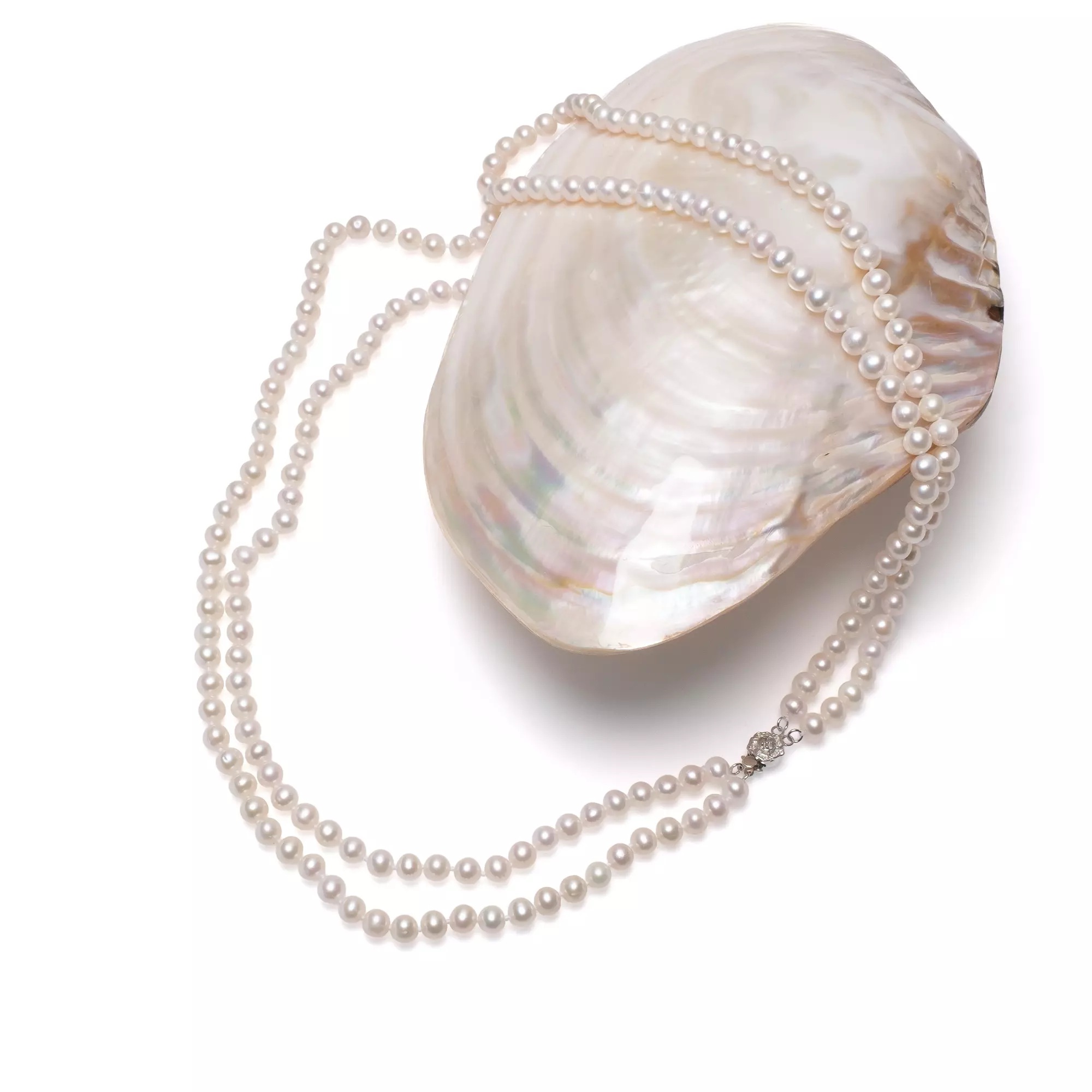 Colier Dublu din Perle Naturale Albe cu Închizătoare "Trandafir"
