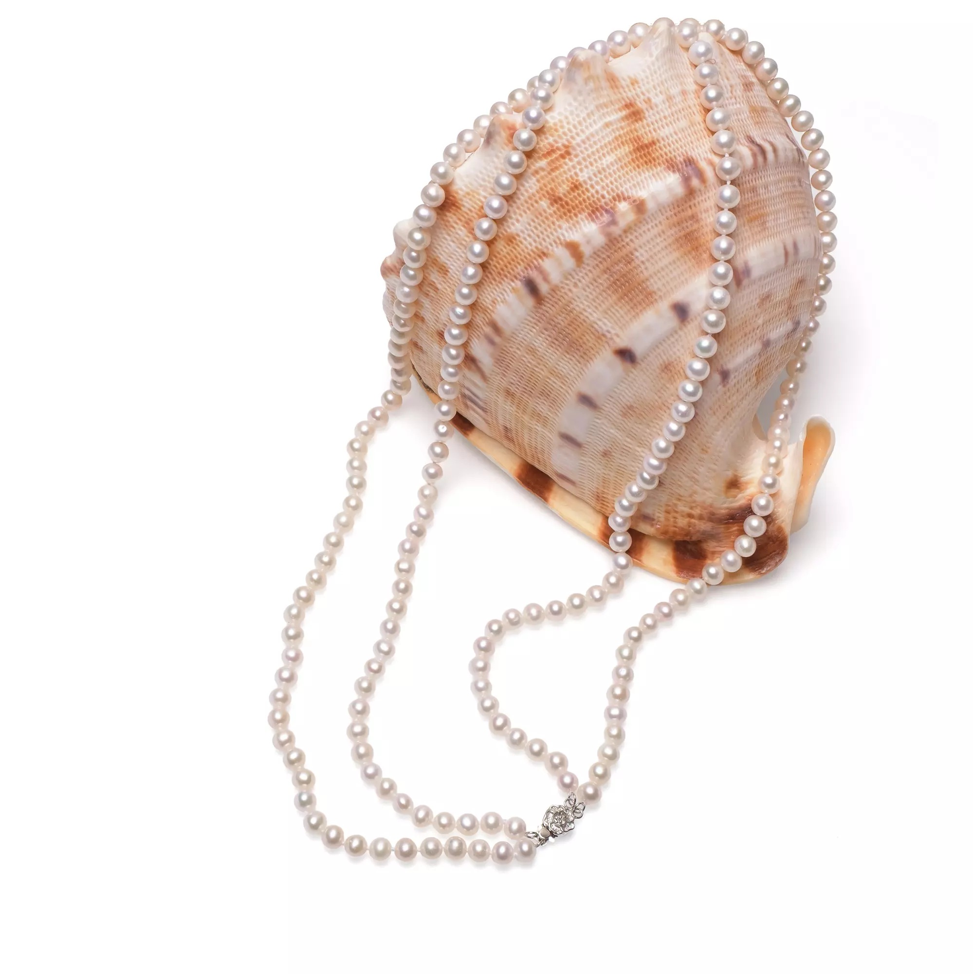 Colier, perle de cultură albe 6-7 mm, închizătoare argin rodiat, lungime 59/66 cm
