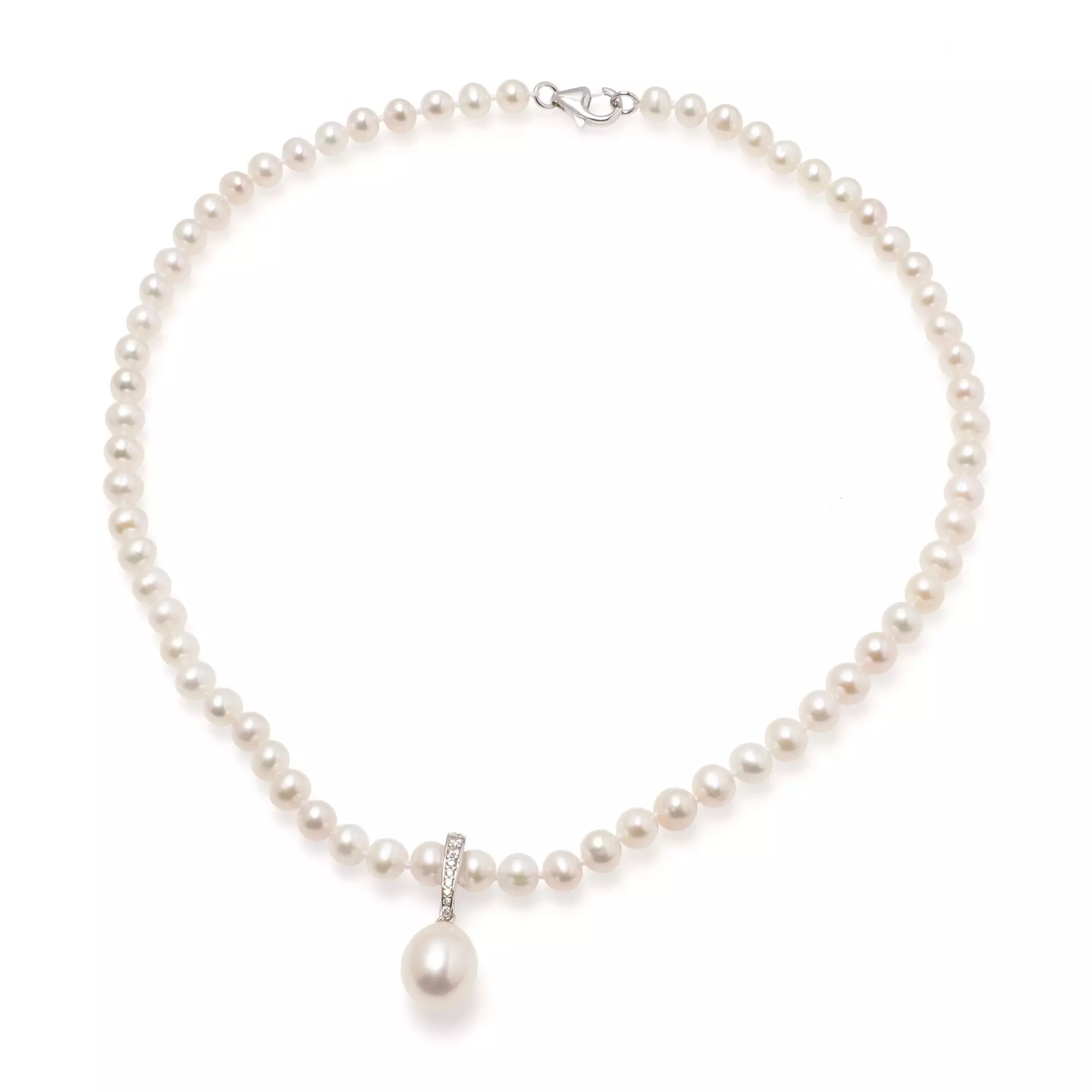 Colier „Picătura de Strălucire”: Perle albe și pandantiv cu zirconii