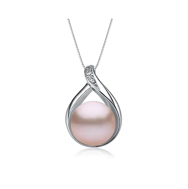 Pandantiv din argint 925, perlă de cultură mov pal 10-11 mm. Lungime lanțișor 43 cm.