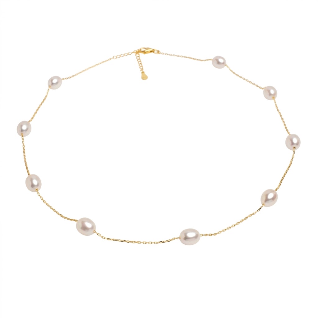 Colier „Pearl Embrace”: Lanțișor din Argint Aurit cu 9 Perle Albe