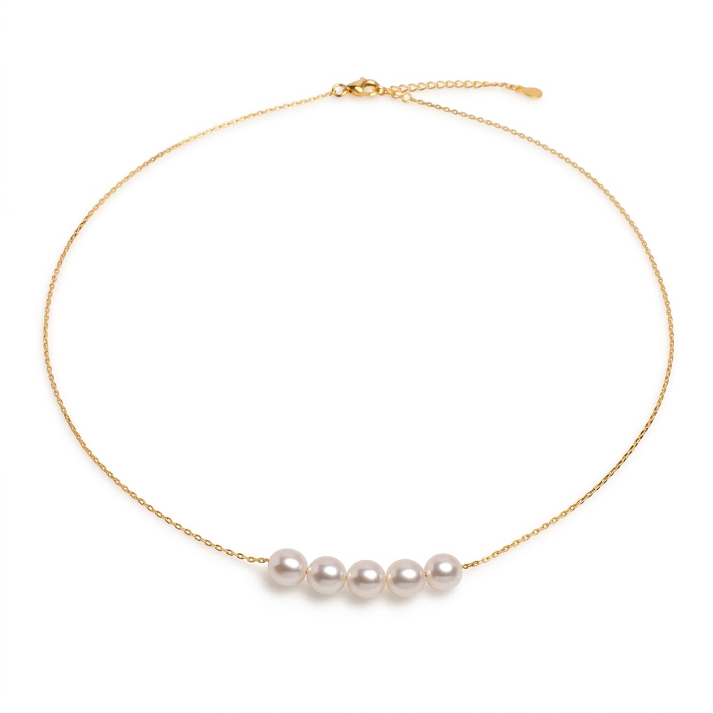 Colier „Golden Quintet”: Lanțișor din Argint Aurit cu 5 Perle Albe