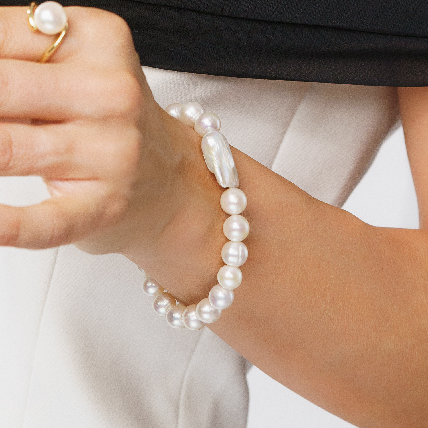 Brățară cu perle albe, 9-10mm, perlă baroc, 15-20mm